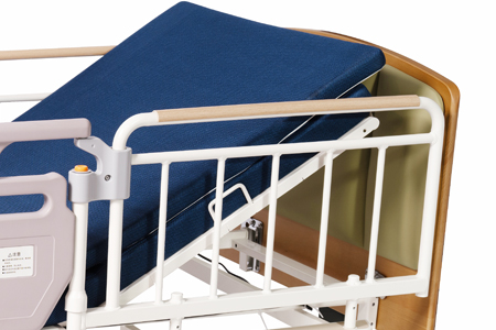 采用新型安全護(hù)欄設(shè)計(jì),當(dāng)護(hù)欄內(nèi)部受力時(shí)無法打開,可從外部向內(nèi)部按壓打開護(hù)欄,從而有效地防止了患者從內(nèi)部誤操作,導(dǎo)致墜床事故的發(fā)生,更加安全